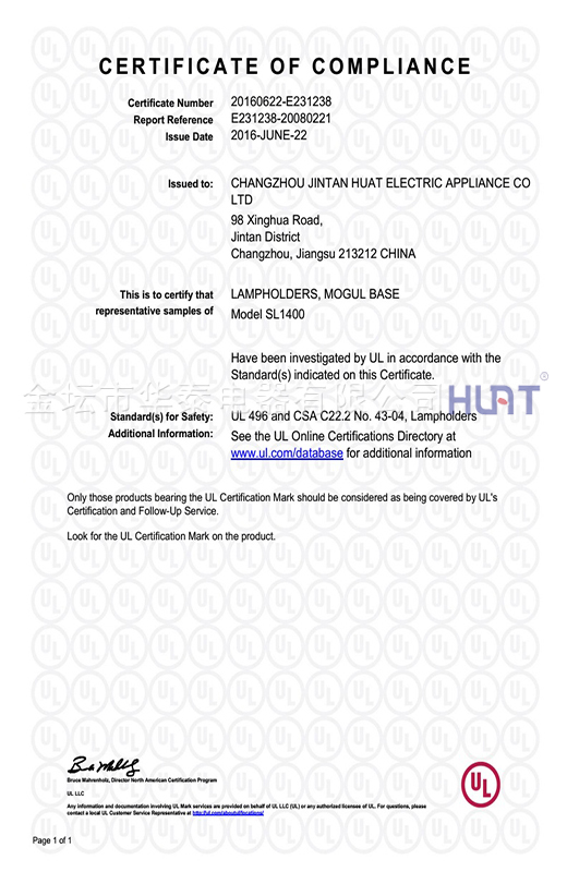 UL證書螺口燈座E39-E231238