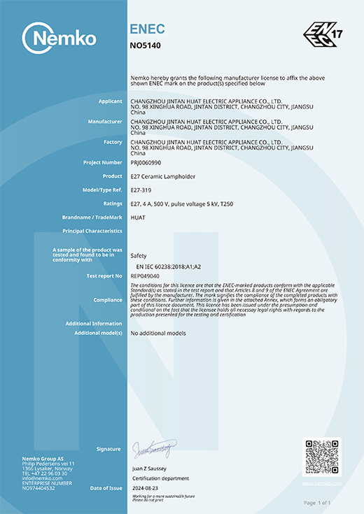 ENEC證書螺口燈座E27-319 232506